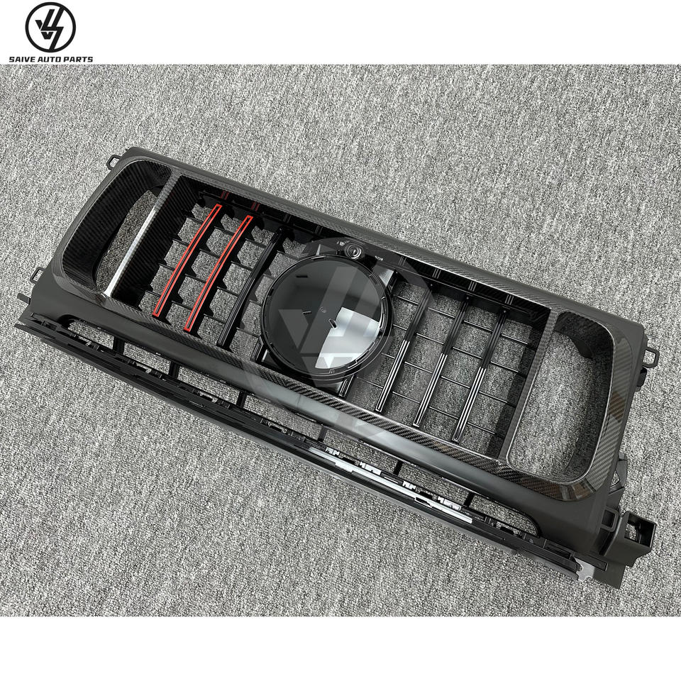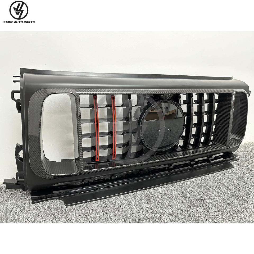 Calandre avant complète en fibre de carbone sèche style R pour Mercedes Benz Classe G W464 G500 AMG G63 2019-2024