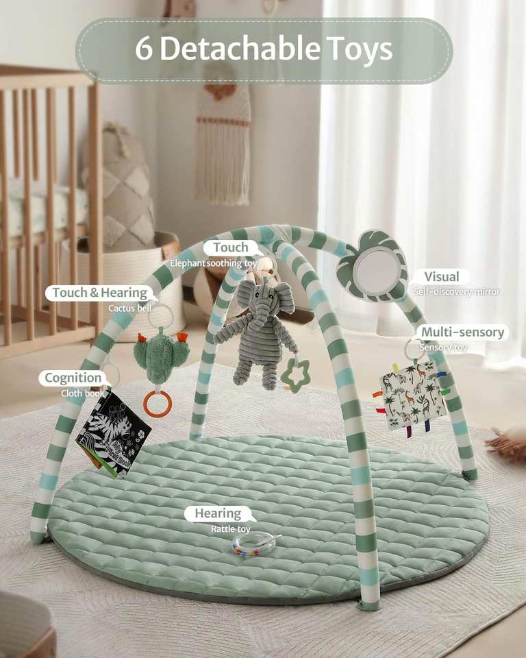 Tapis d'éveil et aire de jeu pour bébé amélioré avec des jouets sensoriels pour le développement des capacités motrices et sensorielles
