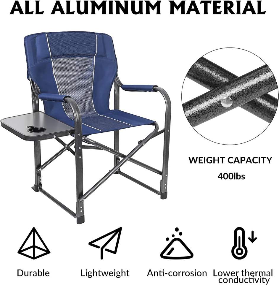 Chaise de camping de directeur surdimensionnée moderne et améliorée, pliable et portable, en alliage d'aluminium, pour la pêche et la plage, avec table d'appoint pour