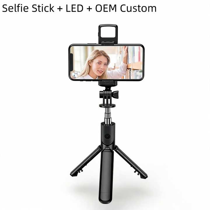 Trépied perche à selfie portable et pliable S03 amélioré avec lumière d'appoint/télécommande sans fil pour iPhone/Samsung/Android, logo personnalisé OEM