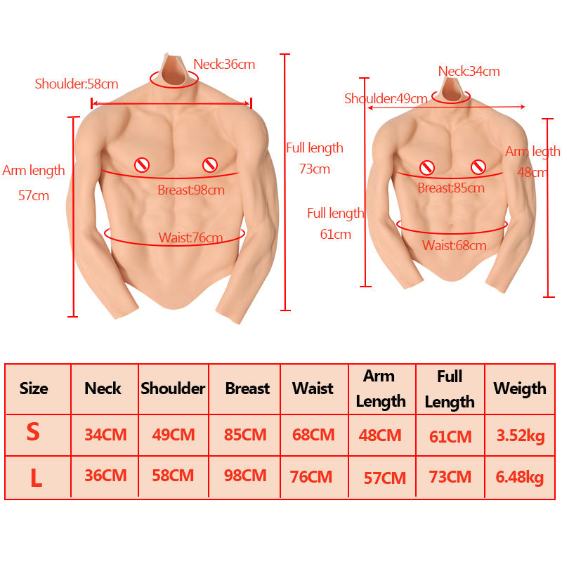 Combinaison demi-corps en silicone améliorée, faux muscle, poitrine en silicone avec bras pour homme, muscles abdominaux artificiels pour costume de cosplay