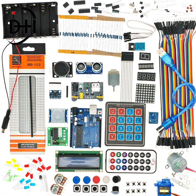 Kit de Démarrage Amélioré pour Arduino UNO R3 avec Composants Électroniques, Tutoriel, Platine d'expérimentation et Programmeur IIC 1602