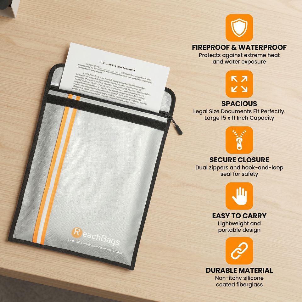 Sac à documents ignifuge à deux poches amélioré, organisateur de rangement pour documents importants, coffre-fort pour objets de valeur, documents légaux