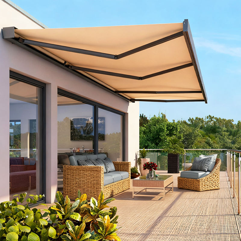 Auvent rétractable motorisé haut de gamme, commande intelligente, auvent à cassette complète pour cour