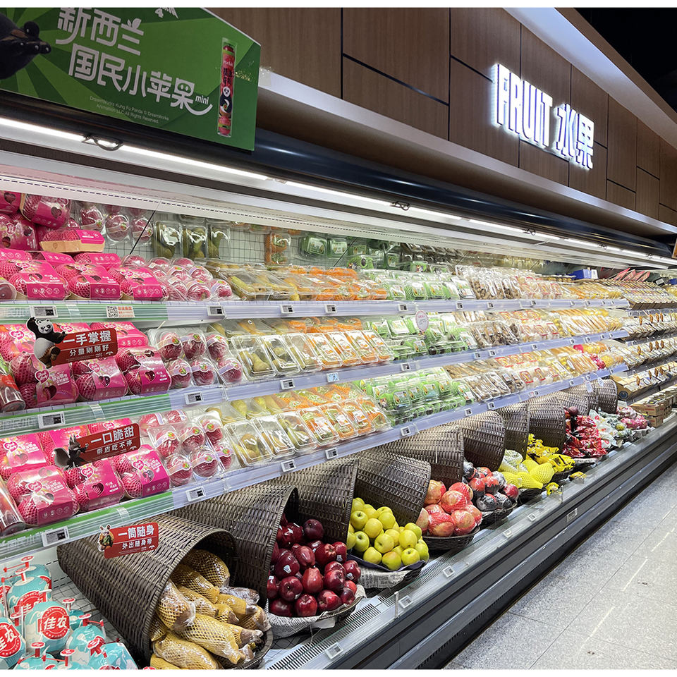 Réfrigérateur-congélateur vertical multi-étagères à refroidissement par air, 4 niveaux, pour supermarché, boissons, légumes, fruits