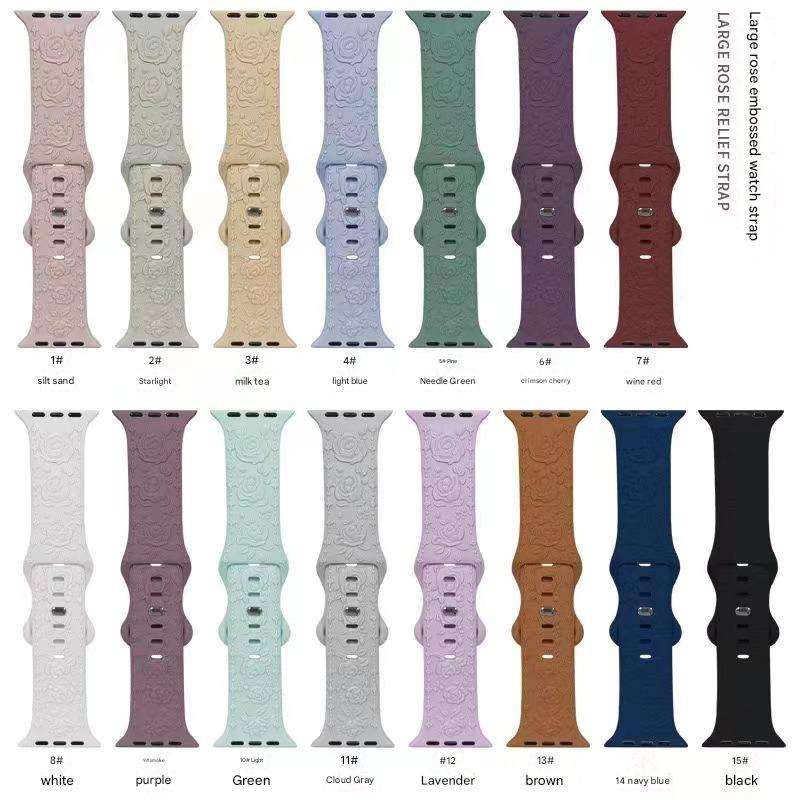 Bracelets de montre en silicone souple de designer avec motif floral en relief