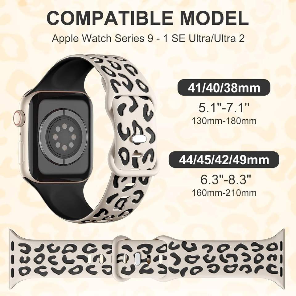 Bracelet en silicone souple sportif gravé Upro Leopard pour Apple Watch, pour femmes, 38, 40, 41, 42, 44, 45, 49 mm, bracelet embossé