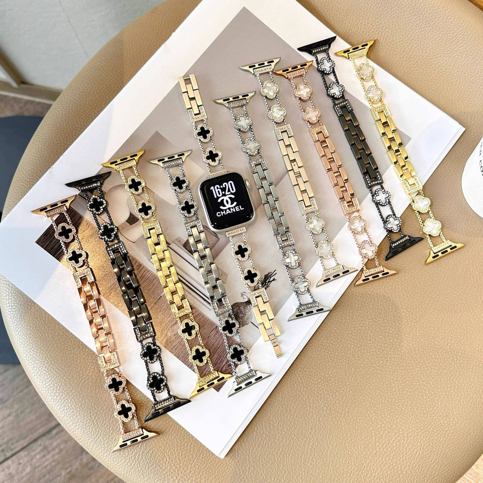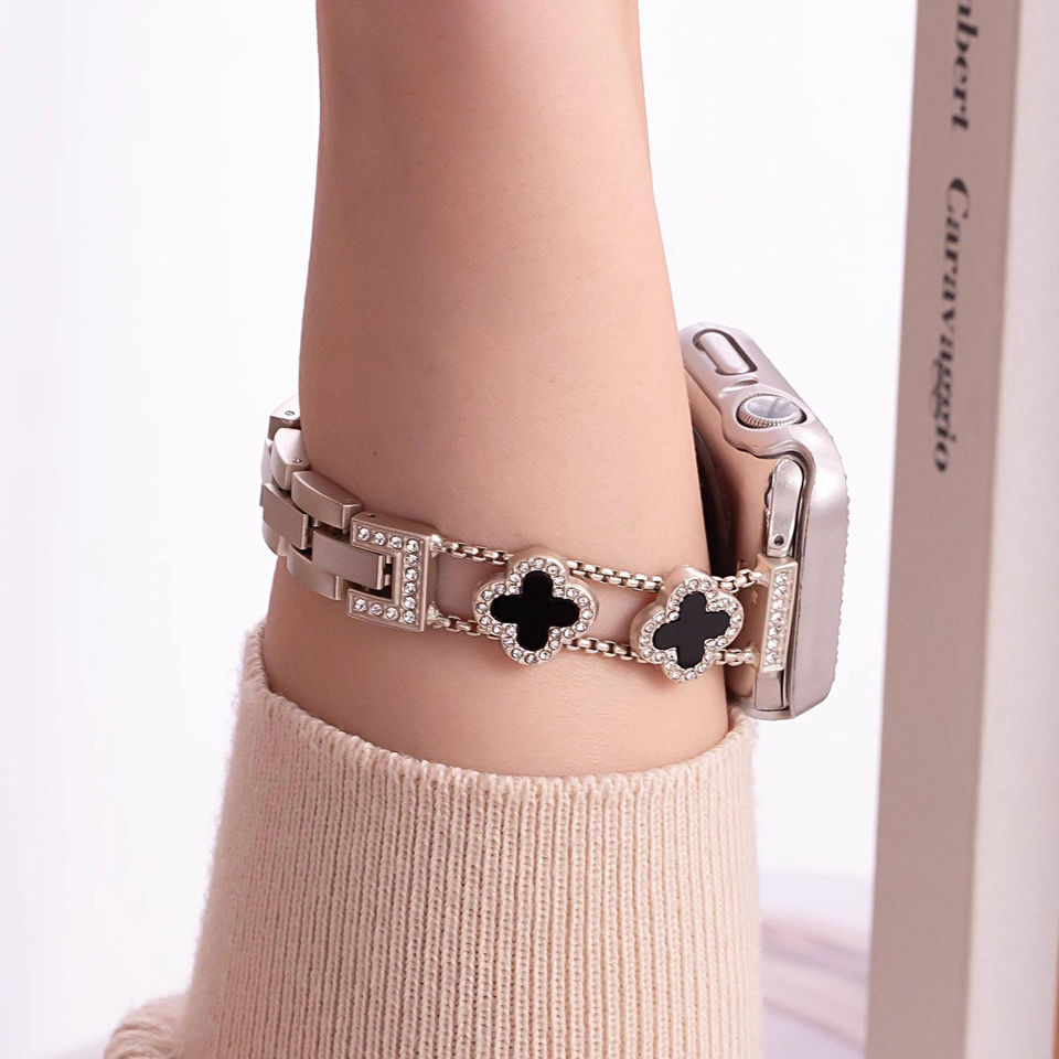 Bracelet de montre en acier inoxydable Upro Clover avec boucle à pression pour Apple Watch 38 mm, bracelet en chaîne de cristal pour femmes