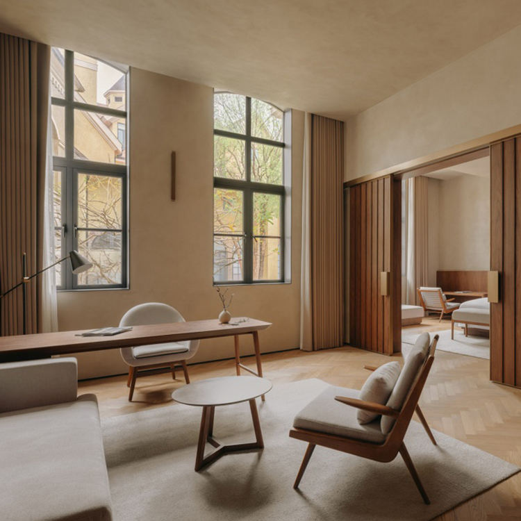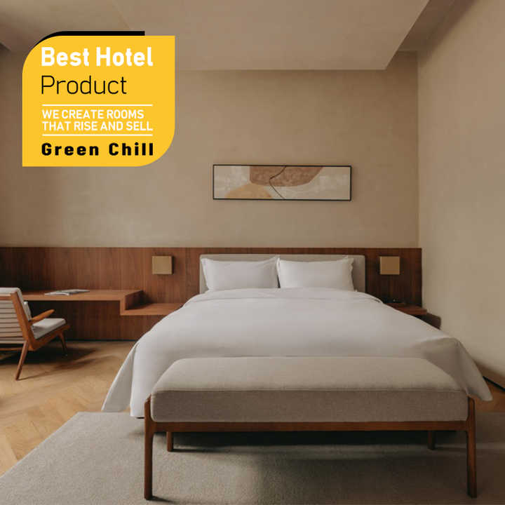 Service de design d'intérieur pour hôtel boutique urbain, ensemble de meubles de chambre en bois massif, décoration professionnelle pour projet hôtelier