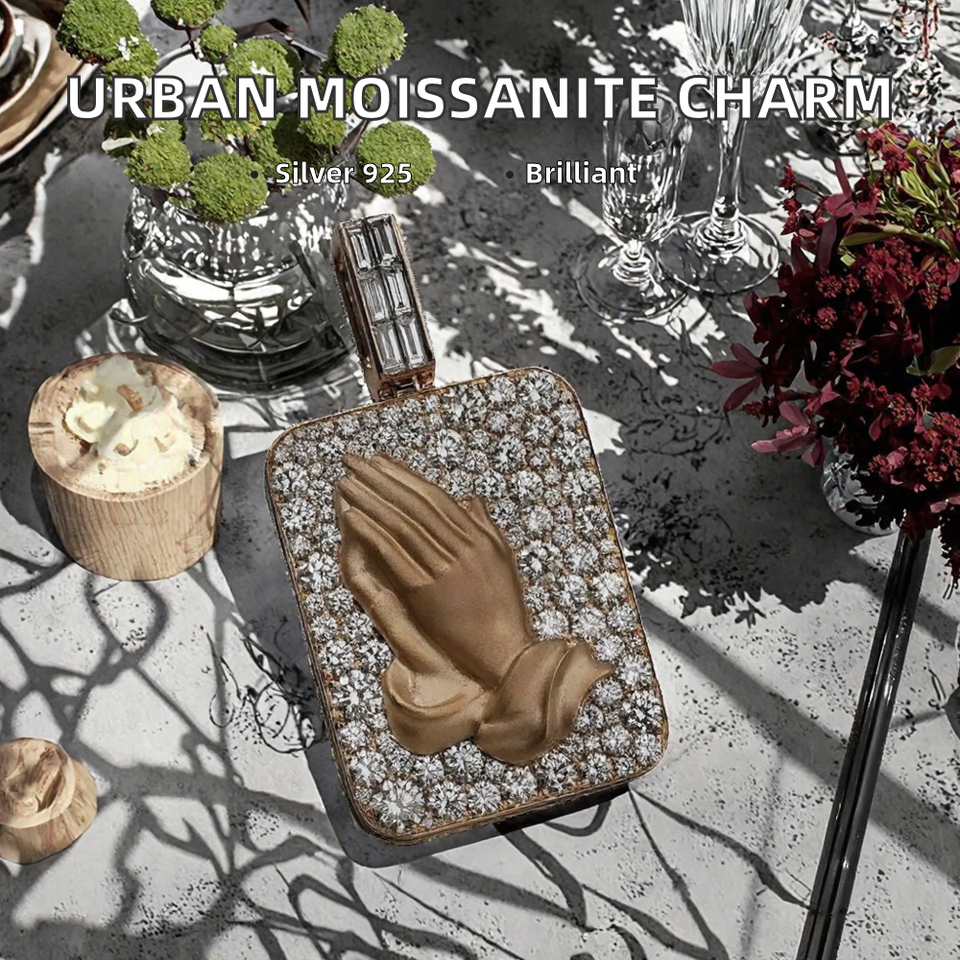 Mode Urbaine Religieuse Hip Hop Punk Bouddhisme Tibétain Moissanite Taille Princesse Certifiée GIA Plaqué Or 14K Argent Sterling 925