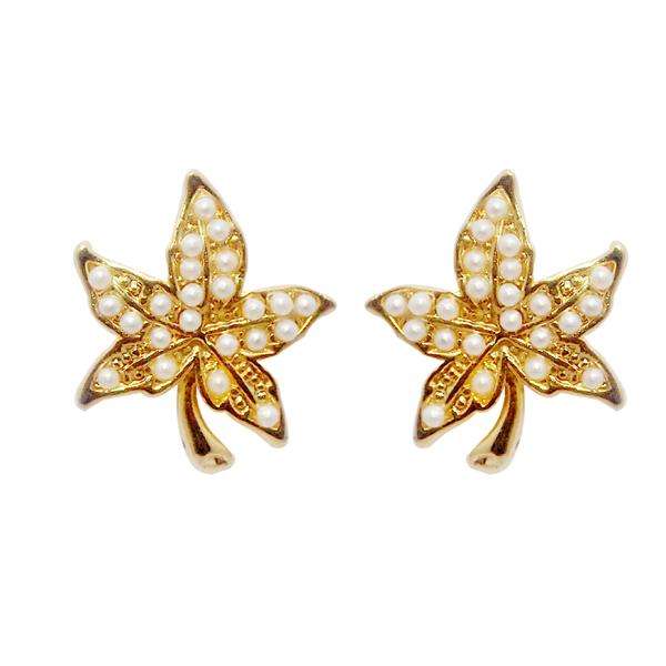 Urbana 1310025 White Pearl Stud Earrings with Gold Plated Leaf Design