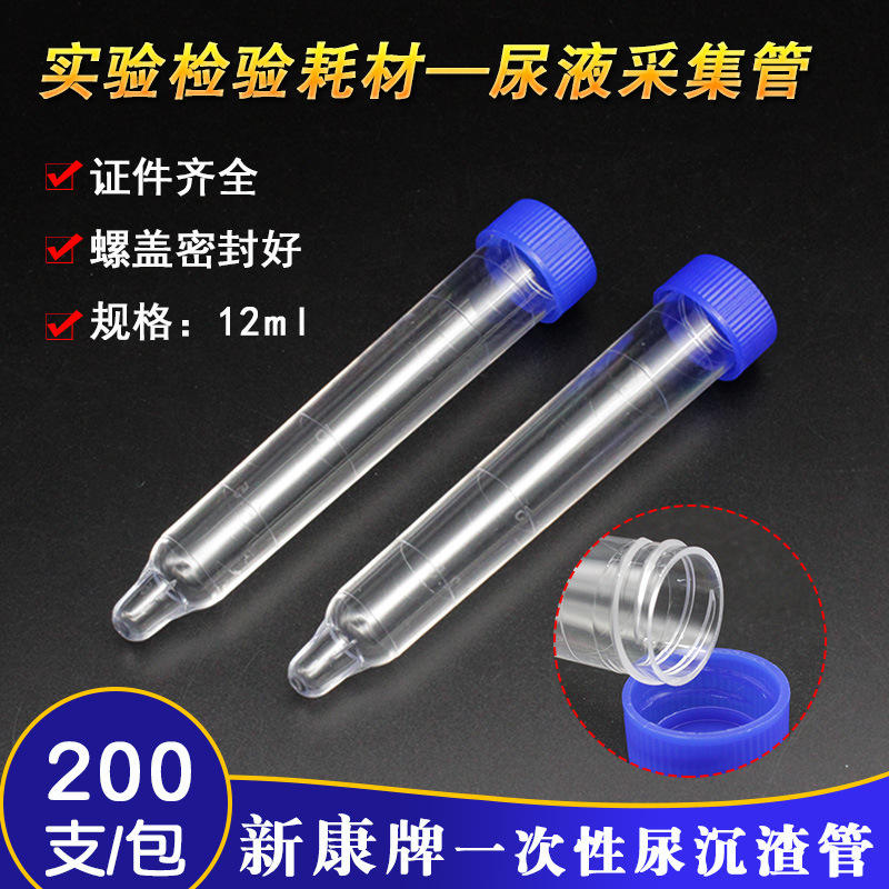 Tubes à essai pour sédiments urinaires, 12 ml, bouchon à vis jetable en plastique, pour utilisation en laboratoire hospitalier, 200 paquets