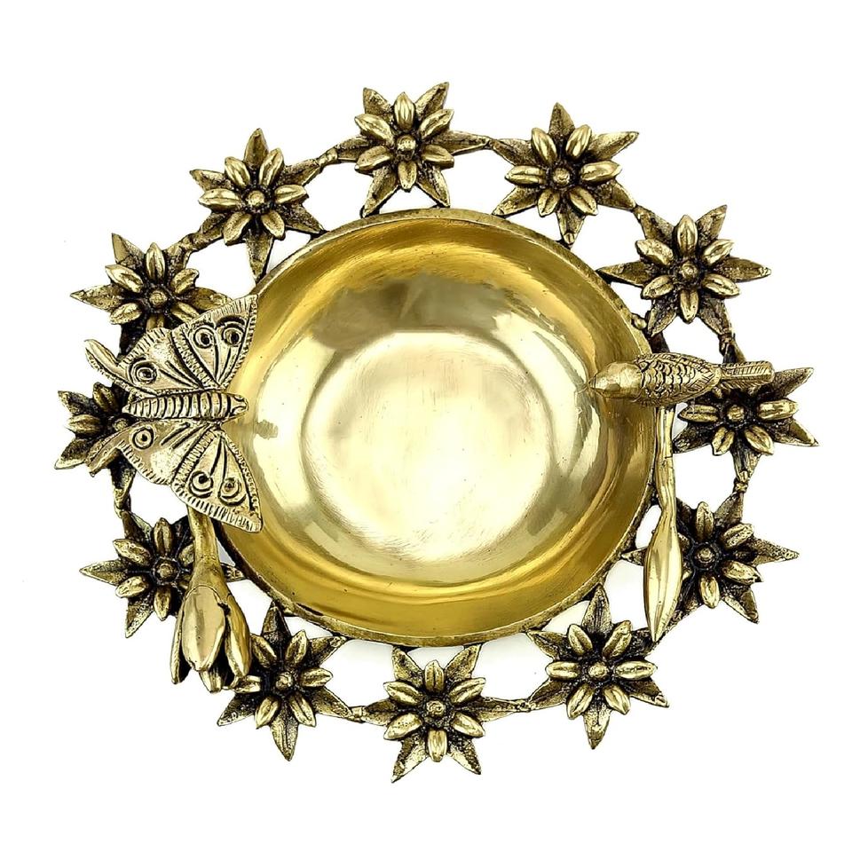 Urli Diya Decorative Flower Bowl with Floral Design Metal Urli for Floating Flowers Candles Traditional Home Festival Decor