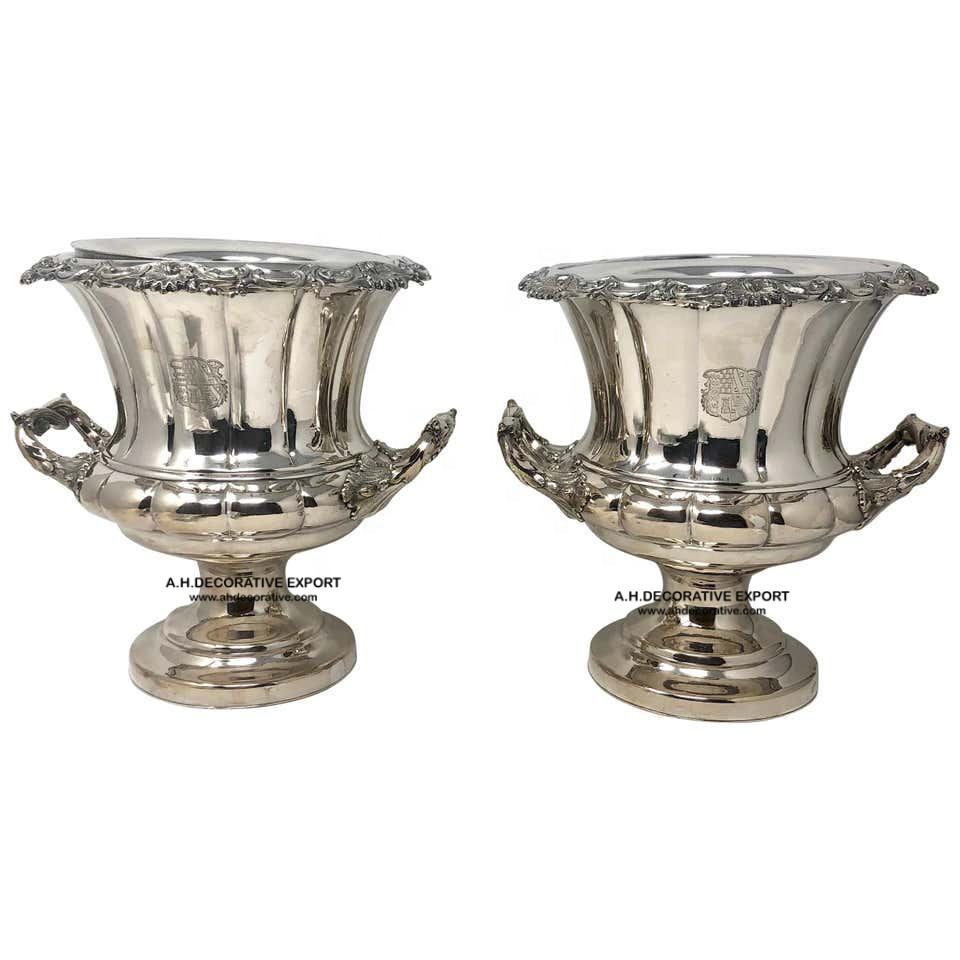 Seau à glace en forme d'urne Refroidisseur de vin pour décoration de fête de bar Seau à glace en métal avec logo personnalisé Accepté