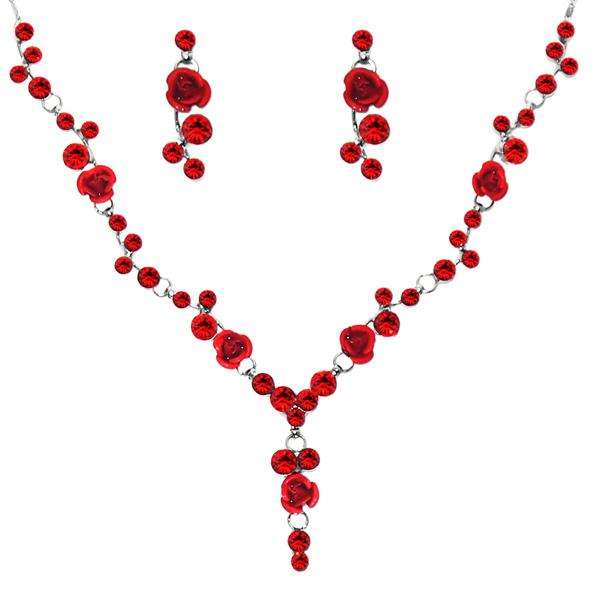 Ensemble de bijoux Urthn Fine Collier plaqué rhodium en pierre autrichienne rouge 1102850