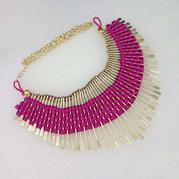 Urthn Statement Necklace 1104143B Pink Thread with Gold Plating Freshwater Pearl and Agate Brass Beads Religious Style