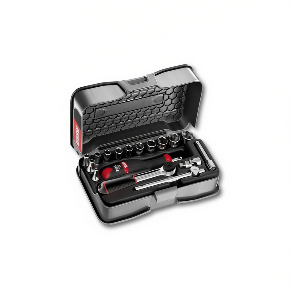 Ensemble d'outils Usag de 14 pièces avec douilles hexagonales et cliquet de 1/4'' dans un coffret ABS assorti