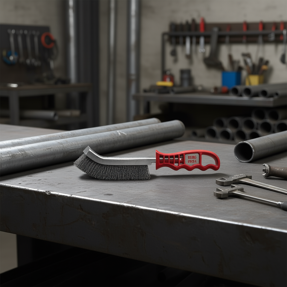 Brosse métallique Usag 993a avec manche rouge pour le nettoyage et l'ébavurage des métaux