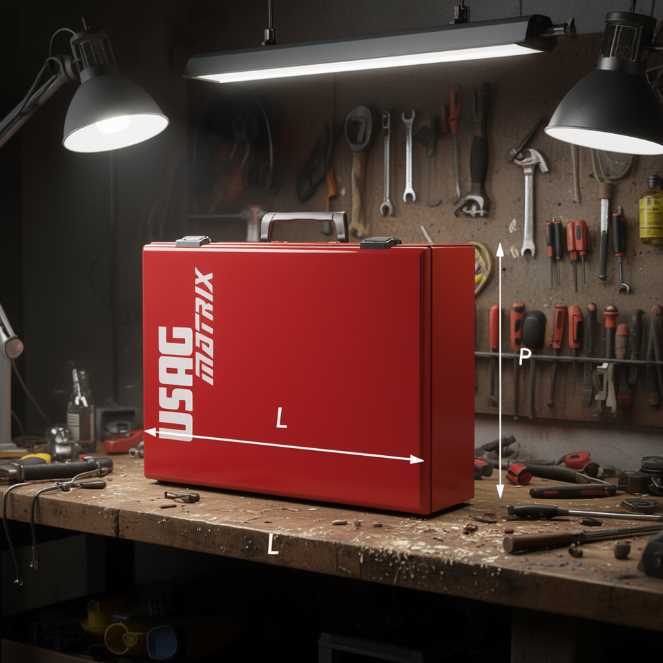 Boîte de rangement portable en métal rouge Usag Matrix Tool Case, dimensions LxHxP