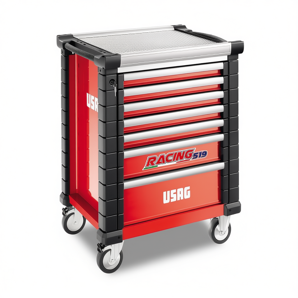 Armoire à outils Usag Racing 519 à 7 tiroirs, chariot de rangement d'atelier roulettes rouges et argentées
