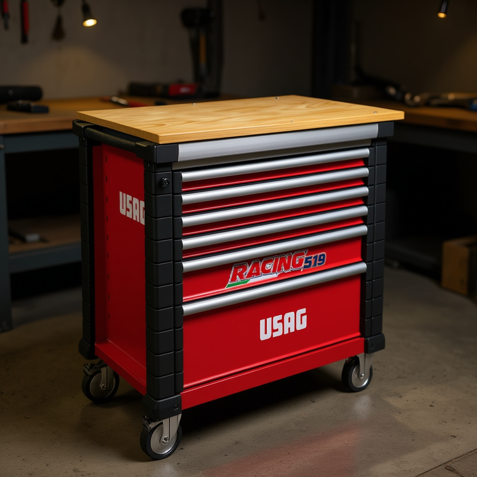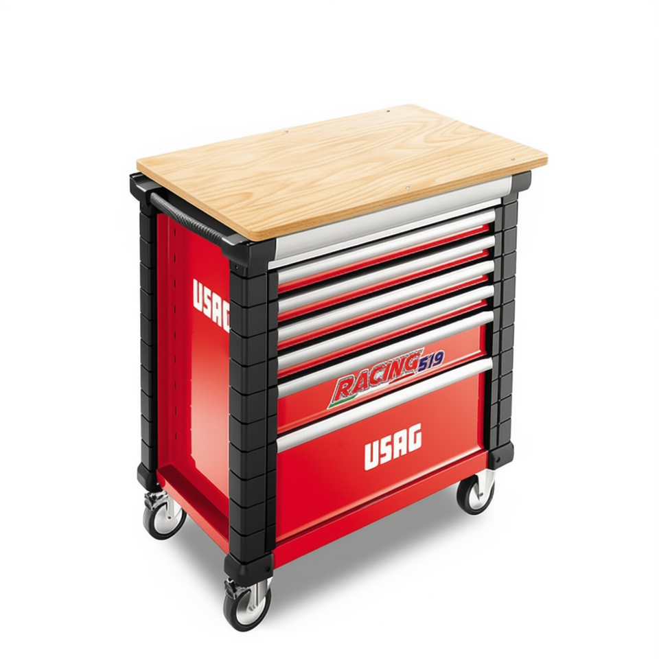 Armoire à outils Usag Racing 519 avec dessus en bois et roulettes pour le rangement en atelier