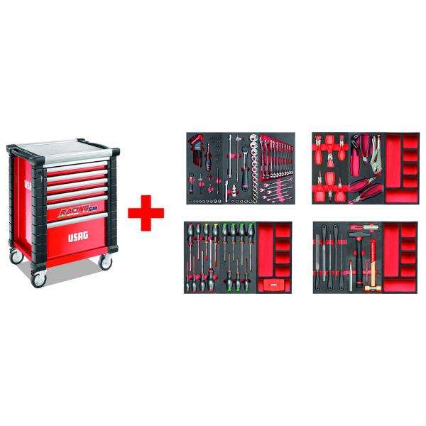 Armoire à roulettes Usag Racing avec un assortiment de 156 pièces pour l'entretien des outils, modèle 495 MB