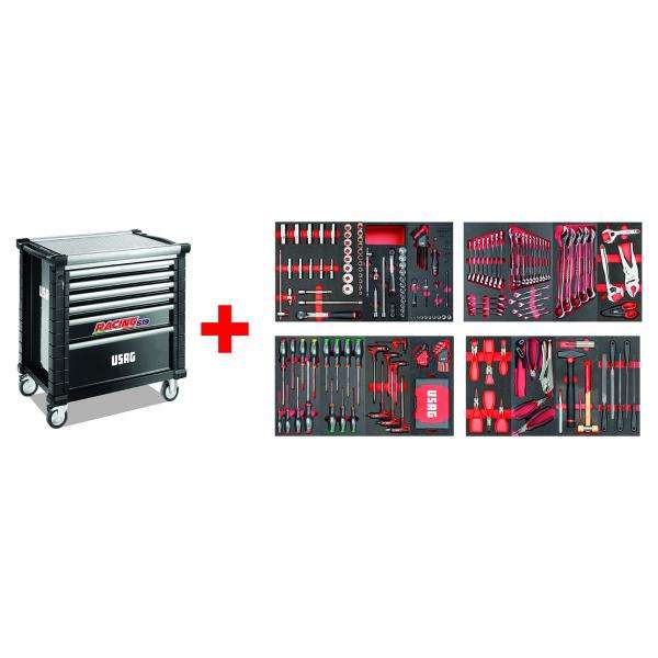 Armoire à roulettes Usag Racing avec assortiment de 300 pièces pour l'entretien, armoires à outils 495 MC