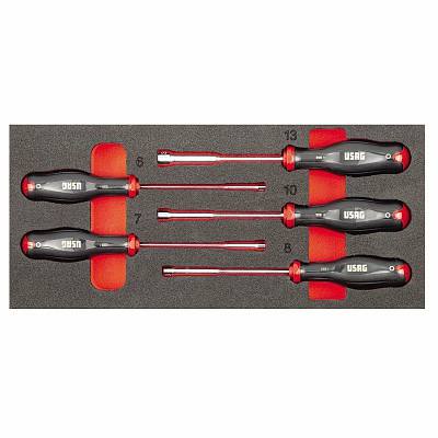 Jeu de tournevis Usag, 6 pièces, tête plate, qualité industrielle, poignée antidérapante