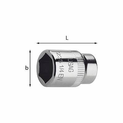 Douille Usag hexagonale de 4 mm, entraînement 1/4 po, qualité industrielle, norme ISO 2725-2