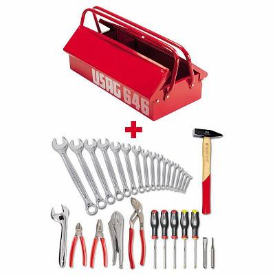 Boîte à outils Usag 646/2A en acier peint, portable, 2 compartiments, 480x240x110mm avec plateau