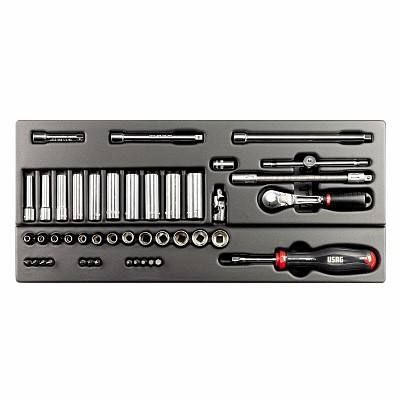 Ensemble d'outils Usag, clé à douille 1/4 pouces, kit d'outils à main en acier au chrome vanadium, 37x23x7,5 cm
