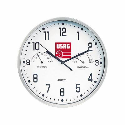 Usag Horloge murale avec thermo-hygromètre, affichage analogique, mouvement à quartz en métal 3783 B