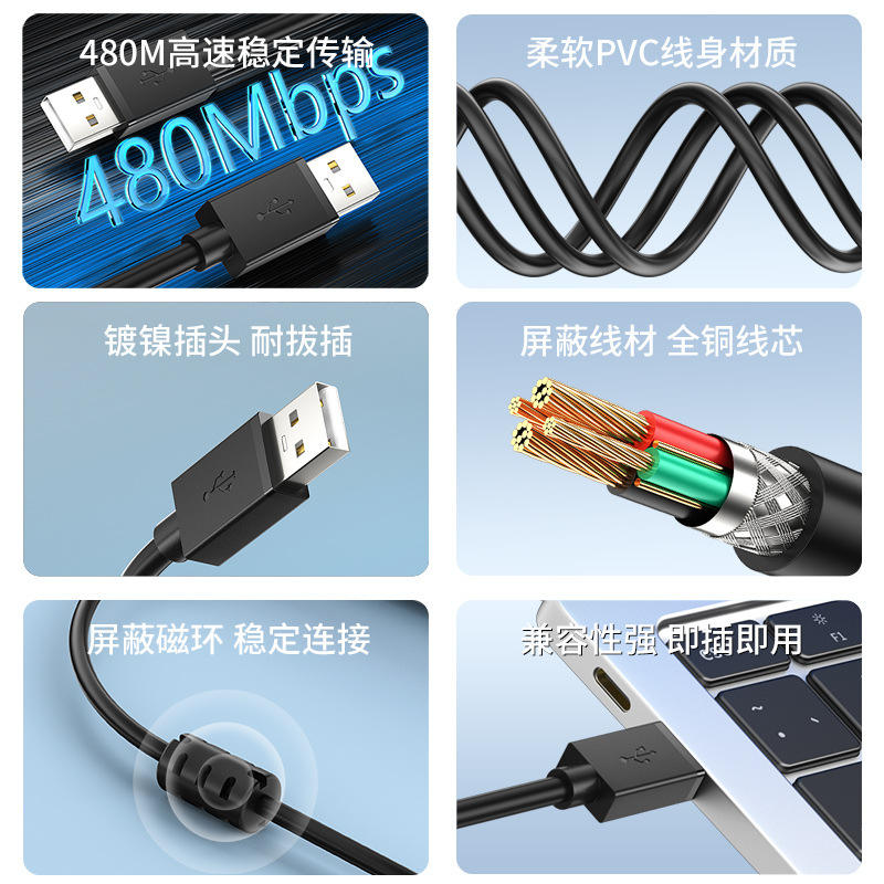 Câble de données USB 2.0 mâle-mâle, fil de cuivre de 1 mètre pour connexion de disque dur externe PC