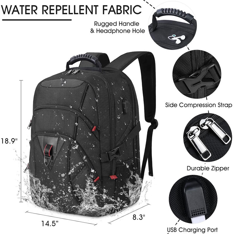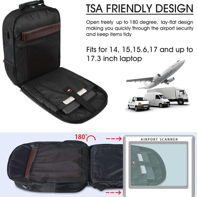 Sac à dos pour ordinateur portable avec port de charge USB, 17 pouces, compatible TSA, imperméable, sac de travail pour ordinateur, sac d'affaires personnalisé pour hommes et femmes