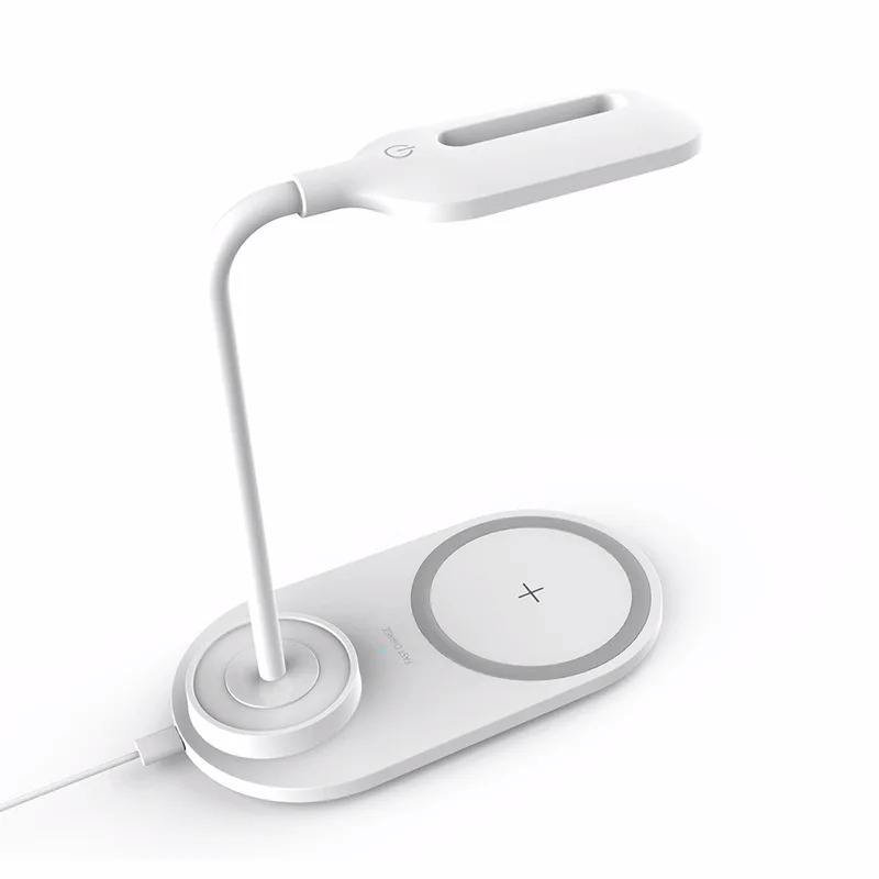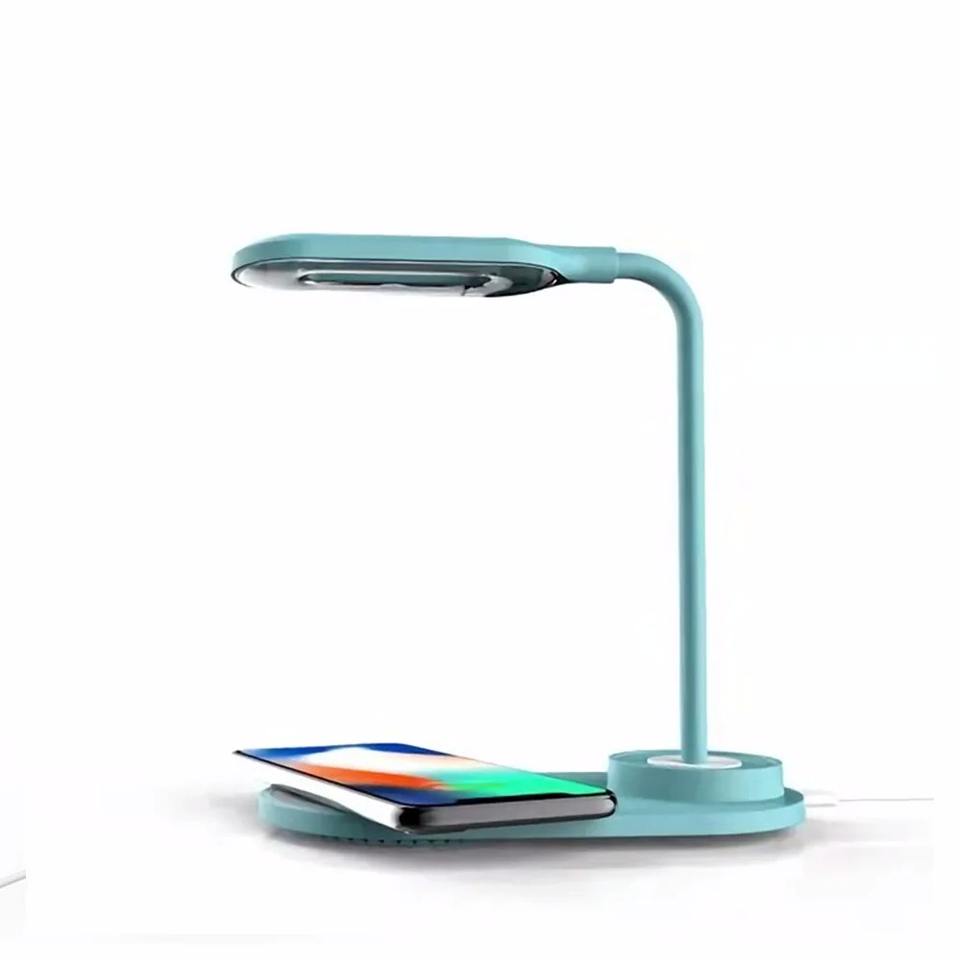 Lampe de bureau USB avec chargeur sans fil, gradation tactile, charge sans fil pour téléphone portable, lumière LED, lampe de lecture multifonctionnelle 10W