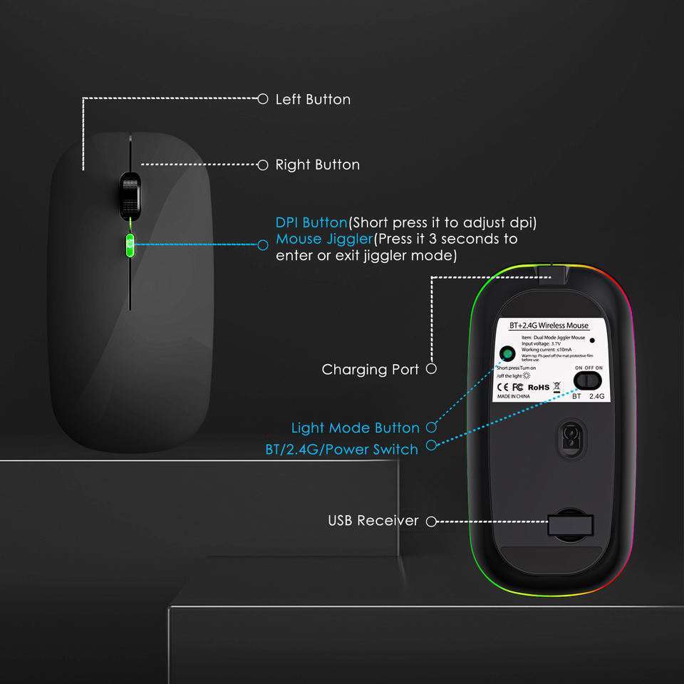 Accessoires d'ordinateur portable double mode rechargeable par USB Souris universelle mince de bureau sans fil pour ordinateur