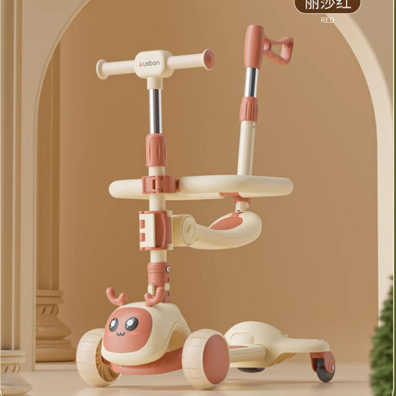 Usbon Kids 3 In 1 Foldable Scooter Tricycle Height Adjustable For 12 Months Plus Children Red