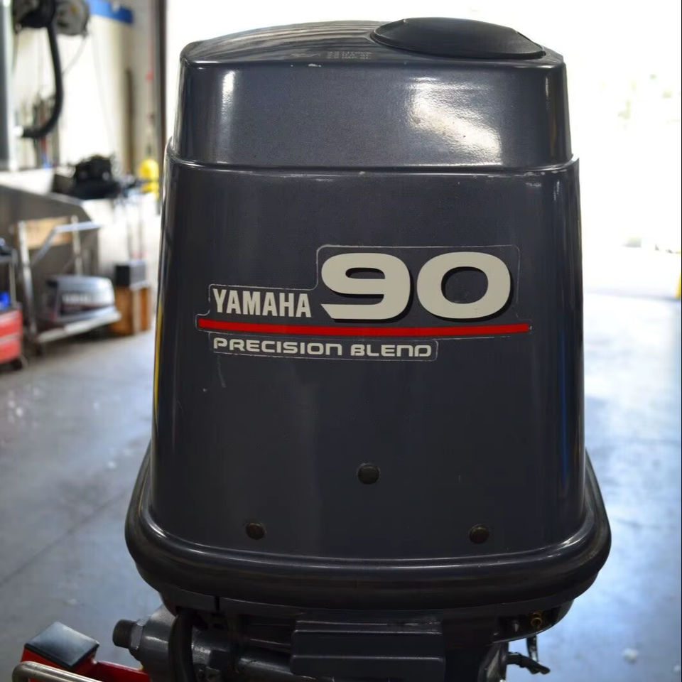 Used Industrial Grade 1998 90hp 2 Stroke 20in Long Shaft Remote Outboard Motor with 3-Year Warranty