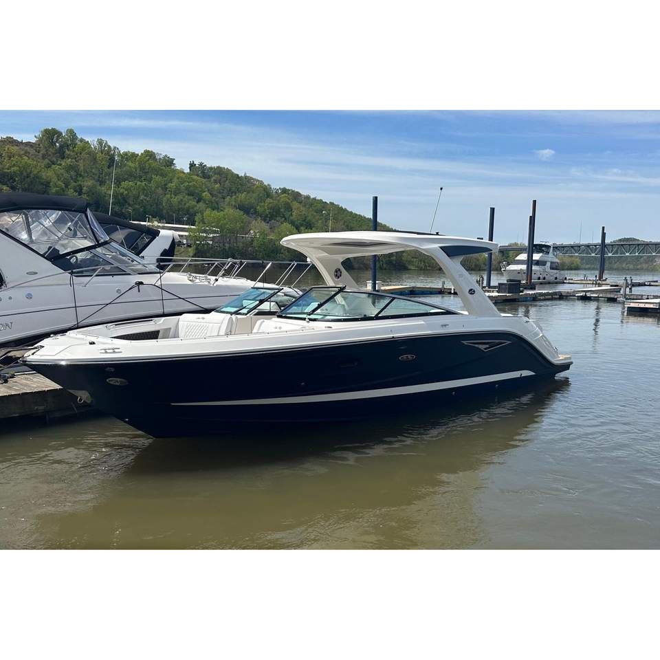 Bateau de travail/towage d'occasion Sea Ray SLX 310 de 2023, luxe, en fibre de verre/acier/aluminium, moteur inboard/outboard, 2 moteurs, MerCruiser, profondeur de flottabilité de 3,17 pieds