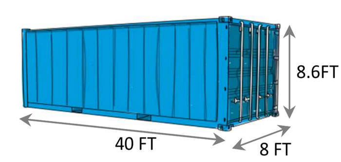 40' long x 8' wide x 8' 6" high.Dimensions Externes (L x W x H) (mm)