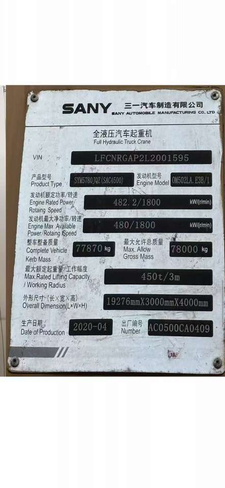 Sany 500 tonnes