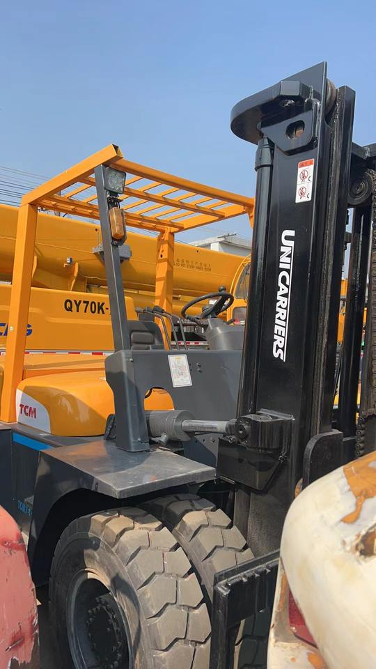 Chariot élévateur diesel manuel d'occasion TCM 8 tonnes, mât à trois sections, longueur de fourche 1000 mm, engrenage central, chariot élévateur de conteneurs, origine Japon