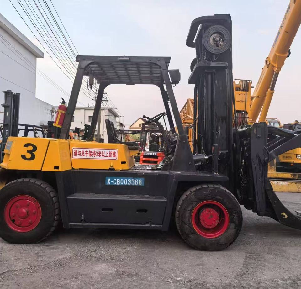 Chariot élévateur diesel TCM d'occasion (7 tonnes, longueur fourche 1520 mm) avec monteur surélevé et pince pour la vente au détail à Shanghai