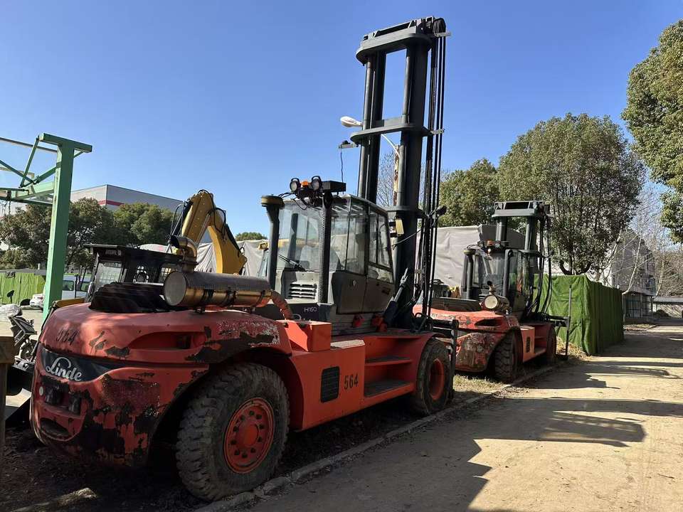 Chariot élévateur Linde H160 d'occasion, moteur diesel Perkins, déplaceur latéral hydraulique, capacité tout-terrain, capacité de 16 tonnes, manutention de matériaux