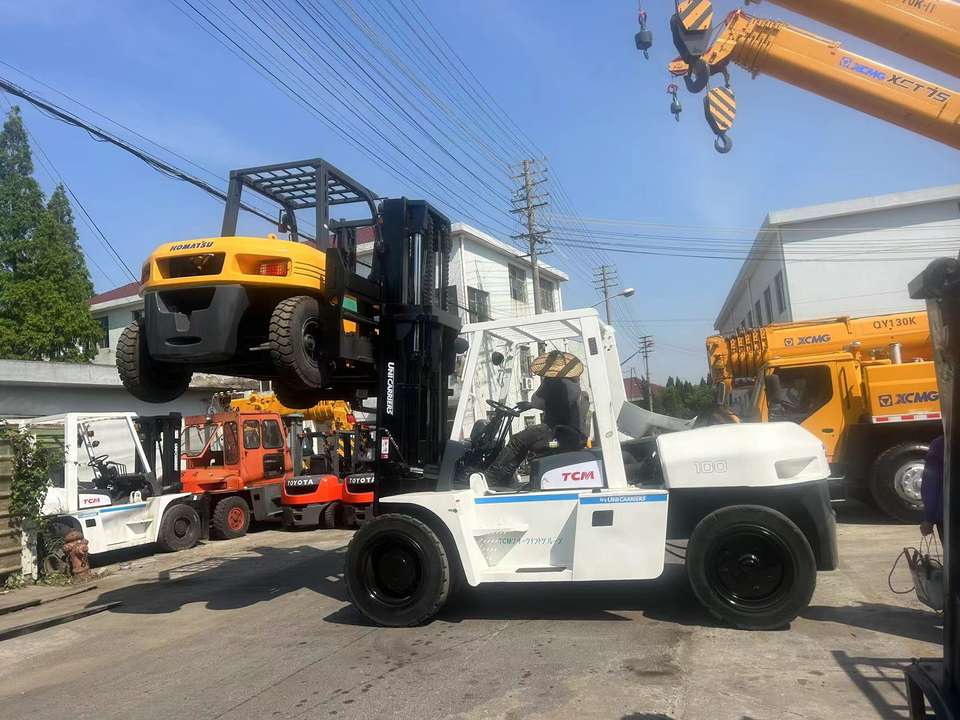 Chariot élévateur diesel TCM 100 de 10 tonnes d'occasion en bon état, système hydraulique, fabriqué au Japon