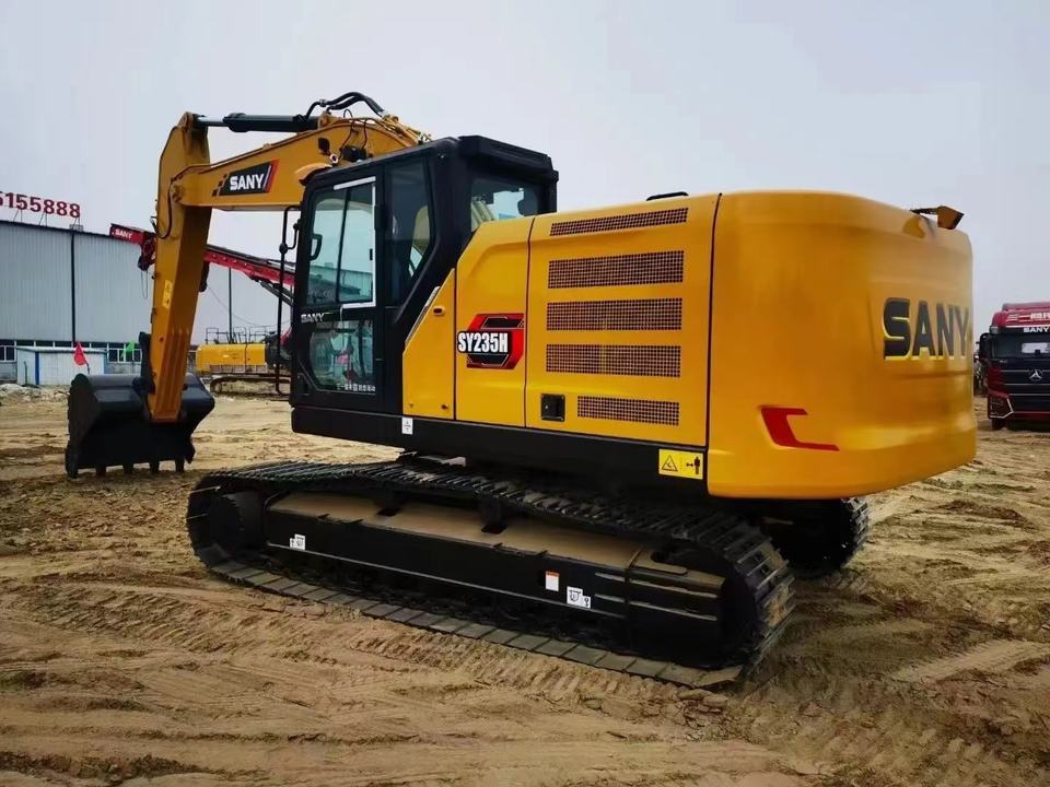 Excavatrice hydraulique sur chenilles Sany SY235H d'occasion en excellent état, modèle 2022, avec moteur, boîte de vitesses, pompe, roulement et PLC d'origine chinoise