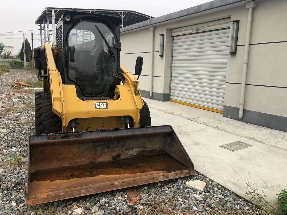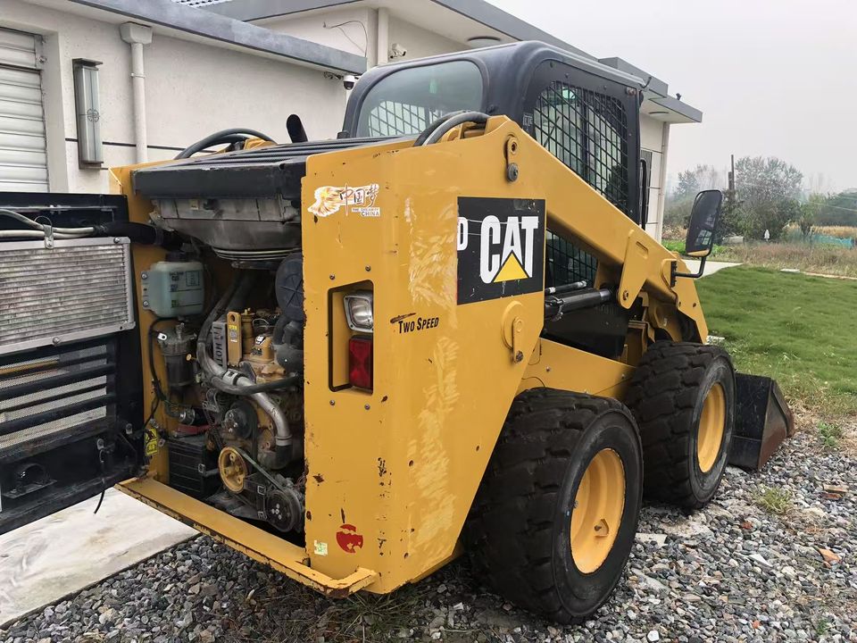 Mini-chargeuse sur pneus d'occasion en bon état, modèle Cat 246D 2022, charge nominale 748 kg, faible nombre d'heures de fonctionnement, moteur et roulements en excellent état.