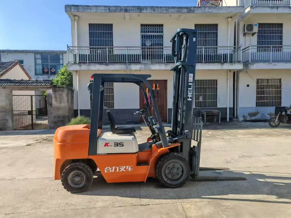 Heli Chariot élévateur diesel d'occasion de 3.5 tonnes avec mât à deux étages et RWD pour travaux de construction à vendre