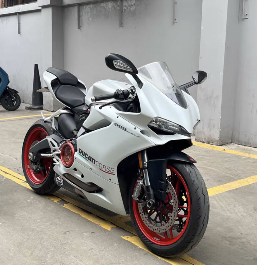 Moto d'occasion haute performance blanche pour moteur Ducati 959cc