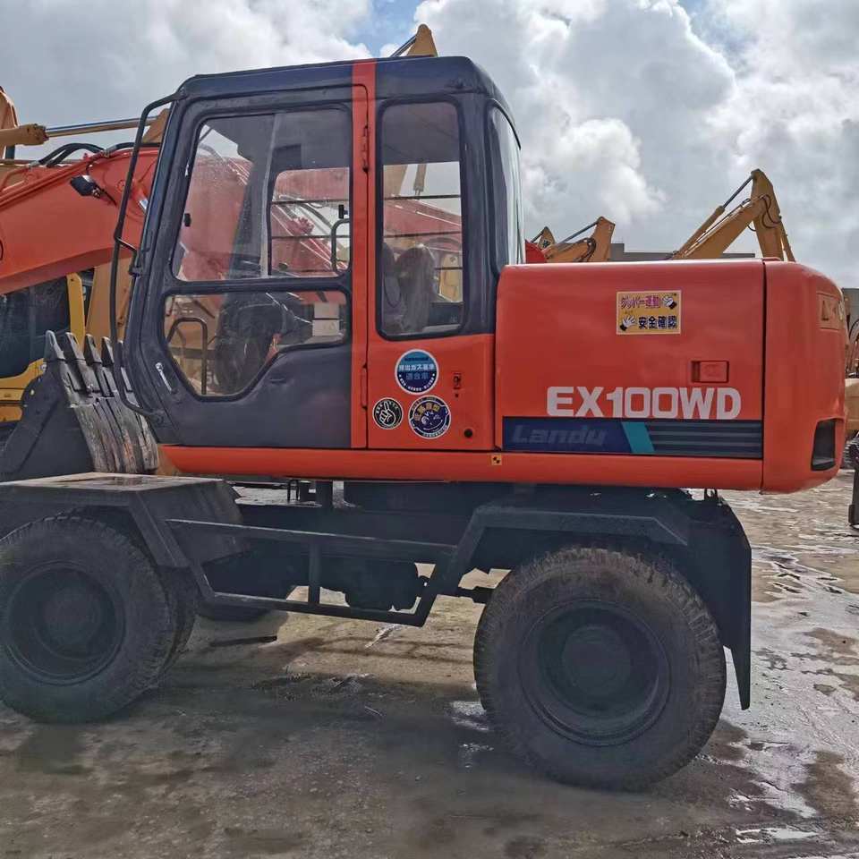 Excavatrice sur pneus Hitachi EX100 d'occasion, performance stable, machine de terrassement hydraulique en bon état